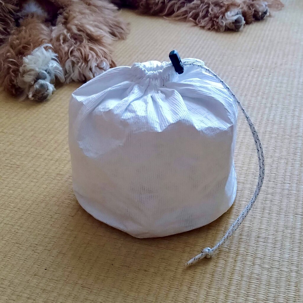 自作タイベック巾着は9gとかなりの軽量化になってる。