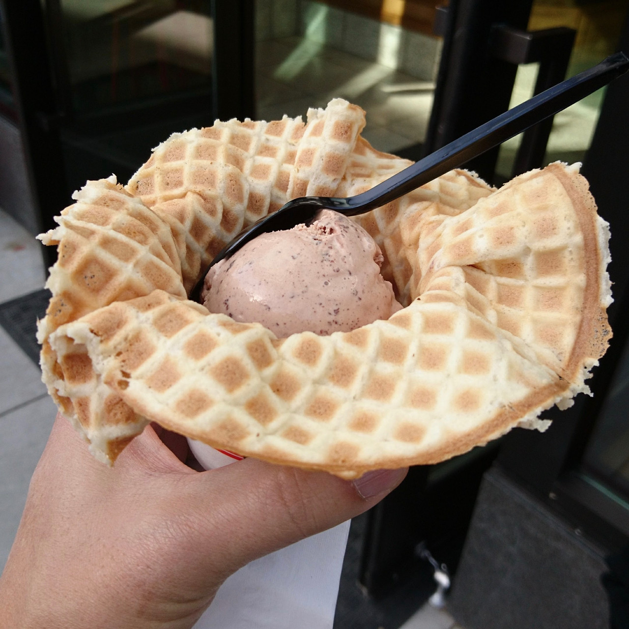 Freckled Woodblock Chocolateをワッフルボウルで。