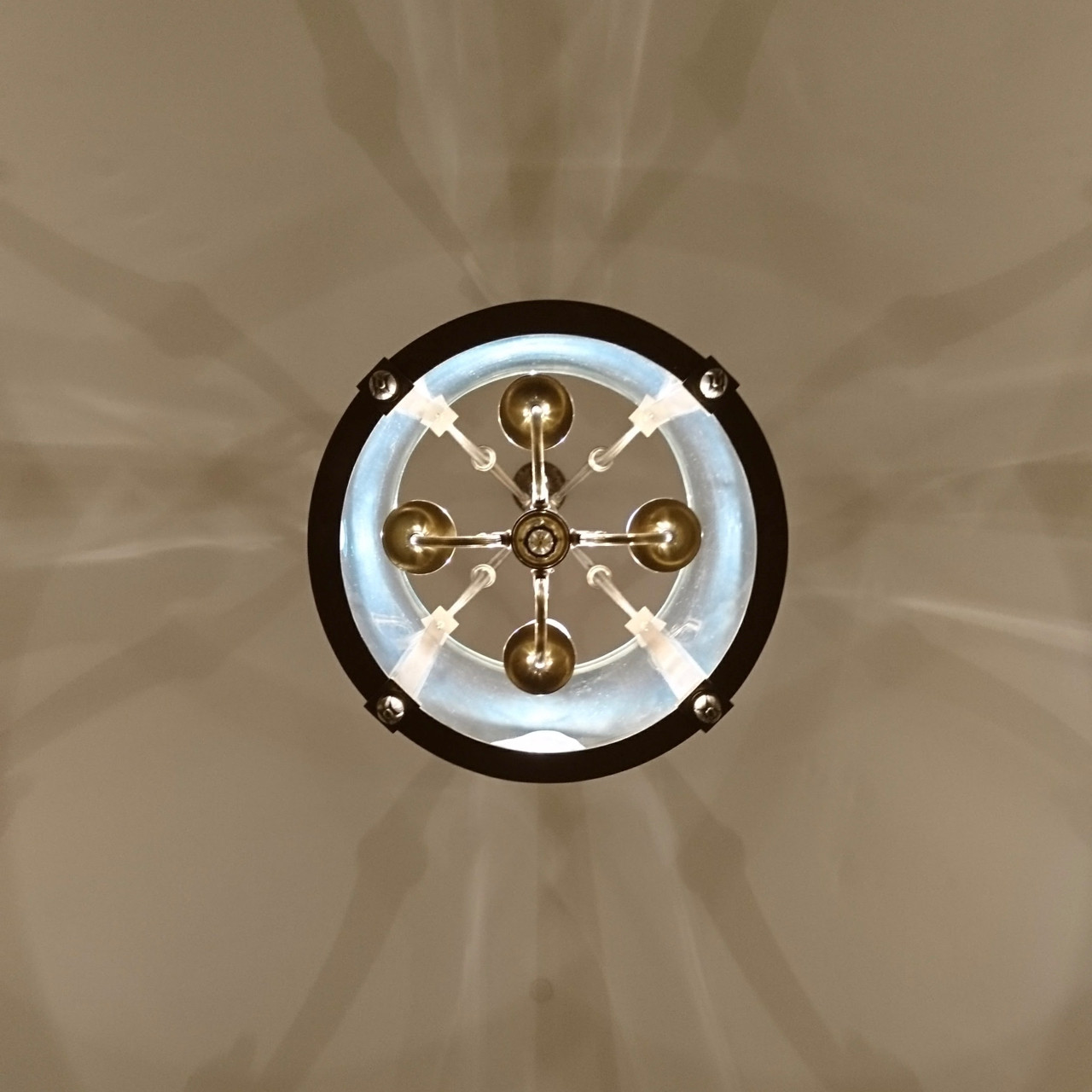 3D CGから実写までシームレスに行き来しつつ照明と天吊りの丸いディスプレイで